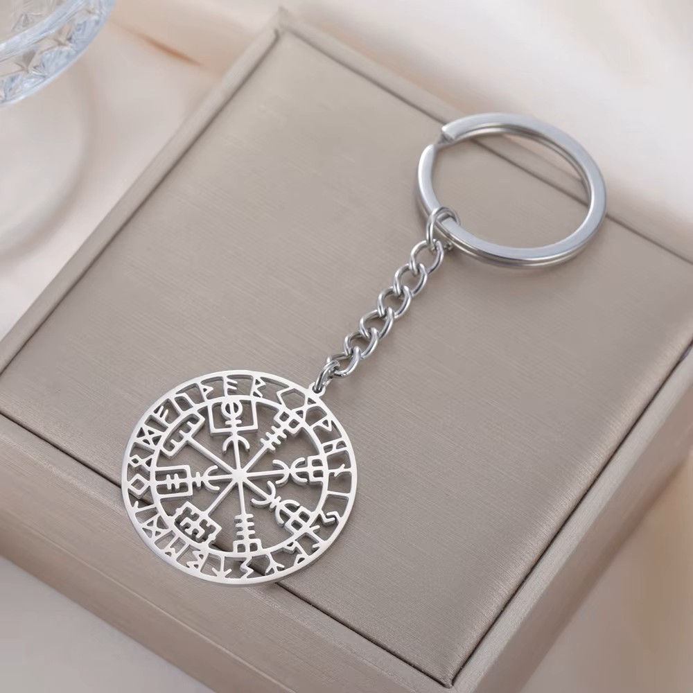 De sleutelhanger heeft een mooie opengewerkte structuur, waardoor hij licht en elegant blijft, terwijl de krachtige symboliek volledig tot zijn recht komt. Het roestvrij staal zorgt voor een duurzame glans. Of je nu op zoek bent naar een persoonlijk amulet, een betekenisvol cadeau voor een reiziger of een eyecatcher met geschiedenis – deze Vegvisir sleutelhanger combineert oude mystiek met moderne elegantie.